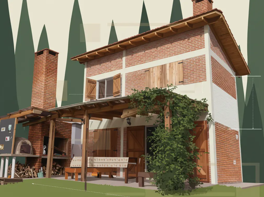 Olga y Hugo soñaban con un lugar donde combinar descanso y trabajo en su nueva etapa de vida. Diseñé tres cabañas en medio del bosque, respetando los árboles existentes y el espíritu del entorno.